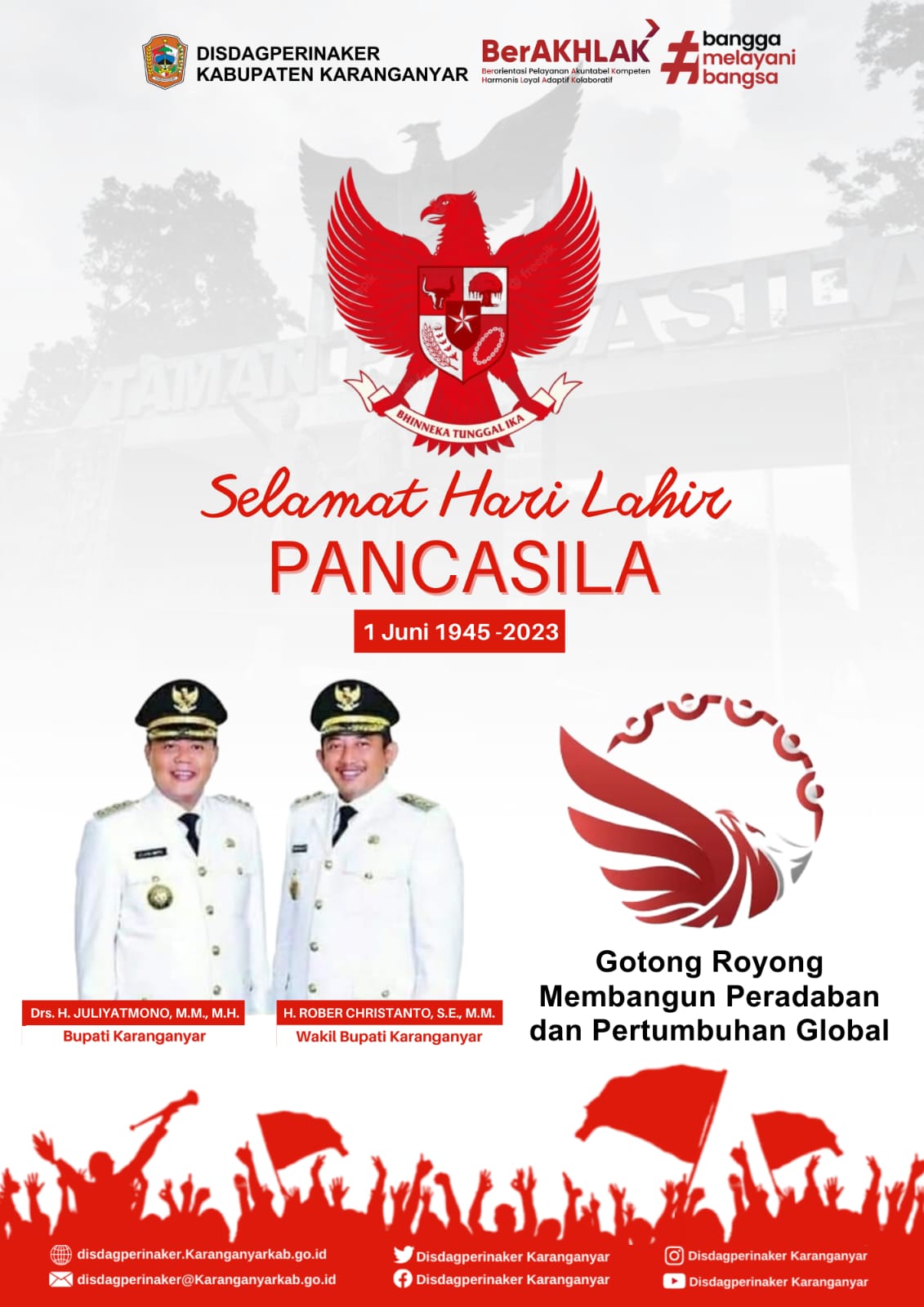 Melaksanakan Upacara Hari Lahir Pancasila Tahun 2024 di Halaman Dinas Perdagangan, Perindustrian, dan Tenaga Kerja Kabupaten Karanganyar.